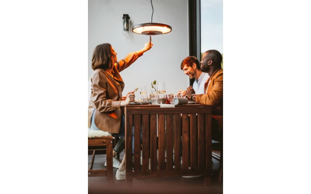 ELEKTRISCHE HEIZBRINGER. Loom, Moow, Oron und Oxeo. Himmlische Namen, die den Status quo unterm freien Himmel neu definieren: die elektrischen Terrassenheizer aus dem Hause Enders. Eine im Design und in ihren Funktionen perfekt aufeinander abgestimmte Modellfamilie aus Stand-, Hänge- und Wandheizern, deren Mitglieder sich ideal ergänzen, aber auch eigenständig hervorragende Leistung abliefern. Eingefasst in eine moderne Designsprache, stechen die elektrischen Terrassenheizer vor allem durch ihre Variabilität hervor. Ob Intensität, Neigungswinkel, Höhe oder Ausrichtung: Die vier Heizbringer lassen sich individuell konfigurieren und garantieren so stets die bestmögliche Wärmestrahlung. Dank Plug & Heat sowie windbeständiger Infrarot-Technologie ist diese quasi augenblicklich erreicht. Einfach himmlisch.