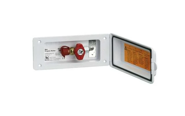 Zum Einbau in die Außenwand von Caravan oder Reisemobil. Mit Klappdeckel.