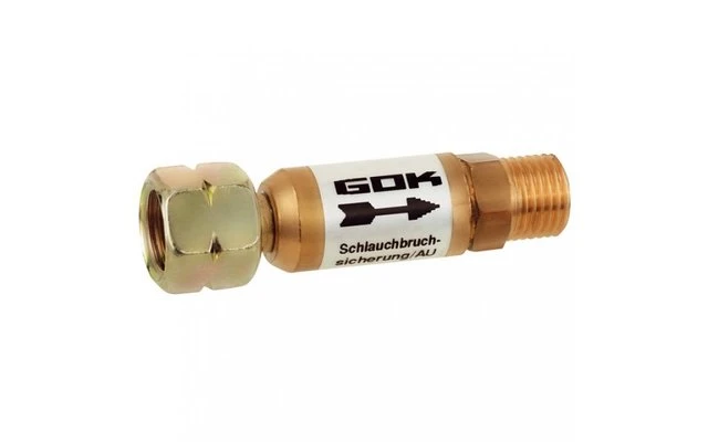 Sperrt bei Riß oder Bruch eines Gasschlauches oder -rohres die Gaszufuhr zuverlässig ab.