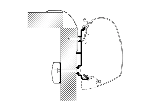 Adaptersatz zur Montage einer Thule Markise an ausgewählten Fahrzeugen wie VW T5/T6 Minivan Reimo, Ford Transit, Ford Tourneo Custom Minivan.