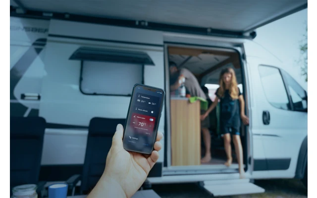 Die Temperatur in Ihrem Fahrzeug regeln Sie stufenlos an einem digitalen Bedienteil. In Kombination mit der Truma iNet Box können Sie Ihre Combi 4 E schon von unterwegs mit der Truma App per Smartphone einschalten.